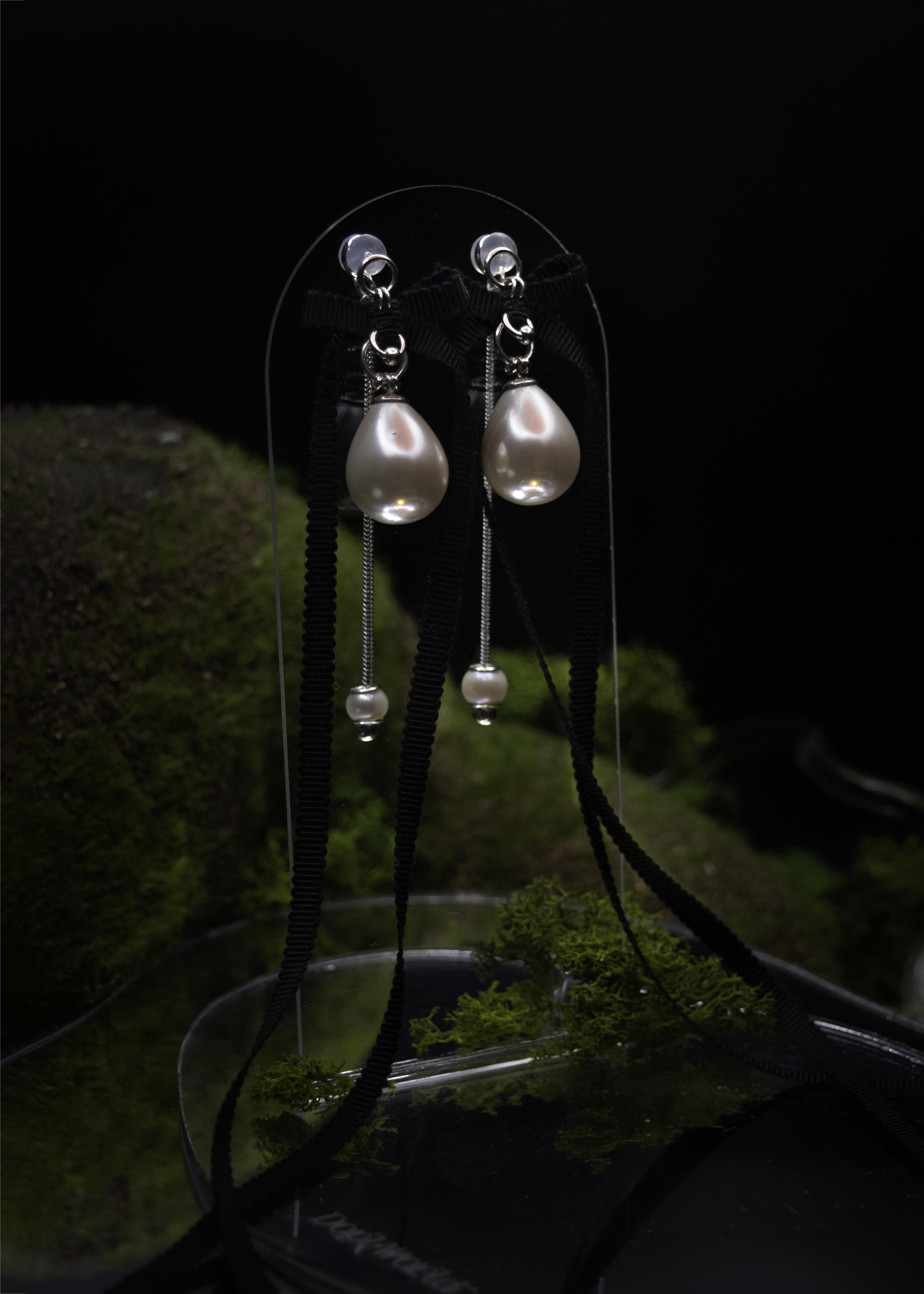 The Hush Earrings punctuate any occasion. Hand sewn with 100% cotton ribbon and glass shell pearl, these earrings add a little whimsy to any look.